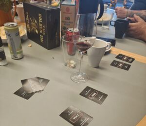 Efter middagen, da alle var mætte, spillede vi ”Hitster”. Sjov musik quiz, hvor vi både lyttede, gættede årstal, sang og dansede lidt stoledans. Det var underholdende og førte også historier med sig fra deltagerne. Alle deltog aktivt og hyggede sig. Efterfølgende var der kaffe/the + chokolade + chips, mens andre drikkevarer var for egen regning.
